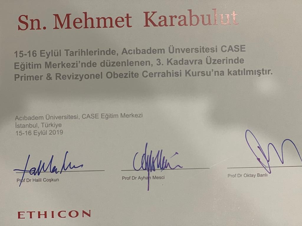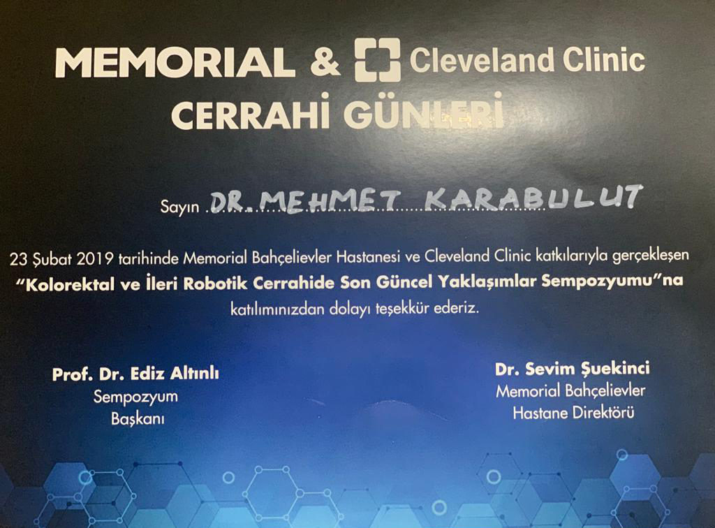 Sertifikalar Doç. Dr. Mehmet KARABULUT Genel Cerrahi Uzmanı (Robotik ve Laporoskopik Cerrahisi) Soru Sor